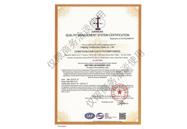 戴工建設(shè)集團(tuán)有限公司,創(chuàng)建于2009年,注冊資本9888萬元人民幣。公司位于北京市大興區(qū)。具有建委頒發(fā)的建筑裝飾裝修專業(yè)壹級,防水保溫工程專業(yè)壹級,建筑幕墻專業(yè)貳級,消防設(shè)施專業(yè)貳級,電子與智能化專業(yè)貳級,特種工程(結(jié)構(gòu)補強)專業(yè)不分等級,建筑機電安裝專業(yè)貳級,環(huán)保工程專業(yè)貳級,鋼結(jié)構(gòu)專業(yè)貳級,建筑工程總承包貳級,建筑裝飾工程設(shè)計專項甲級,展覽陳列工程設(shè)計與施工壹級,展覽展示工程壹級...更多>>